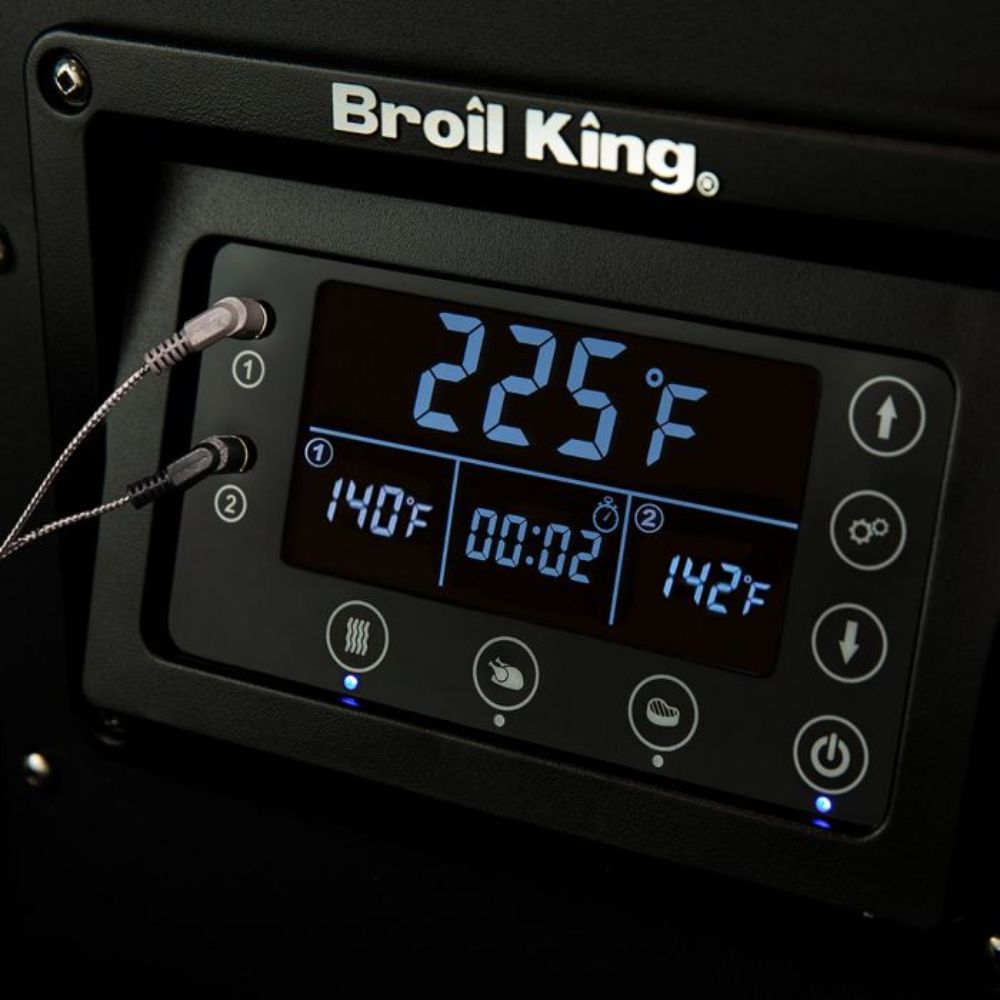 Experience durability and versatility with these heavy-gauge steel grills, offering precise cooking from smoking to searing. Enjoy natural wood smoke flavors, digital controls from 180°F to a searing 600°F, and an integrated timer for perfect doneness. Monitor food temperatures with deluxe probes, control settings via adjustable dials, and store up to 18 pounds of pellets in the large steel hopper. Plus, the grill syncs with the Broil King Pellet Grilling App for smartphone control, enhancing your grilling convenience.