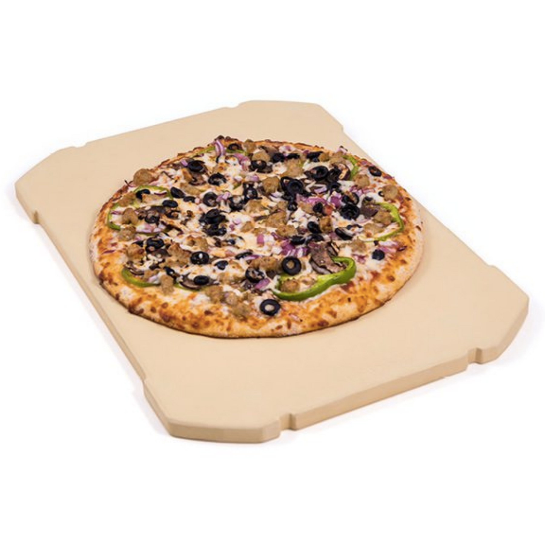 The exact fit rectangular pizza stone occupies the space of 2 Baron™ cooking grids to offer a large baking surface right on your grill. This reversible stone holds heat to quickly bake pizzas on the grill. The best way to get the perfect pizza crust. Each pizza stone fits between the rods on Regal™ stainless steel rod cooking grid or on top of the grilling surface of most grills.