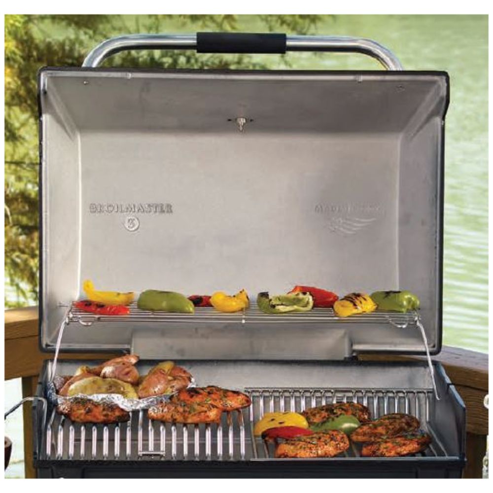 • Two stainless Steel Rod Cooking Grids- 2-Level Adjustable (473 Sq. In. Of total cooking area)