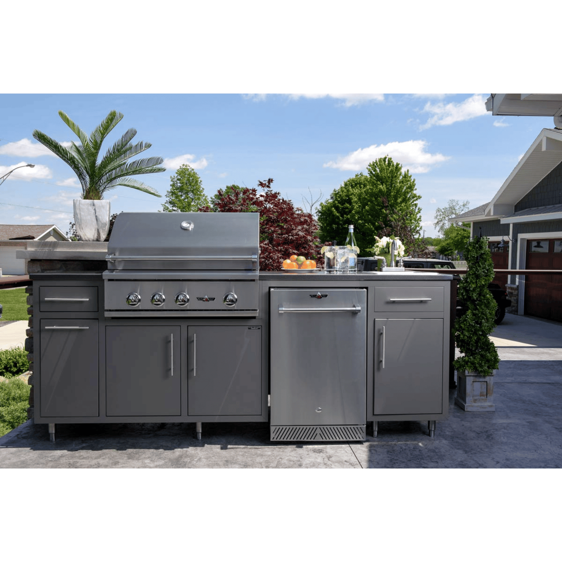 Includes Waste Bin with Drawer Above, Gas Grill Base, 21.5” Refrigerator Opening, Sink Base