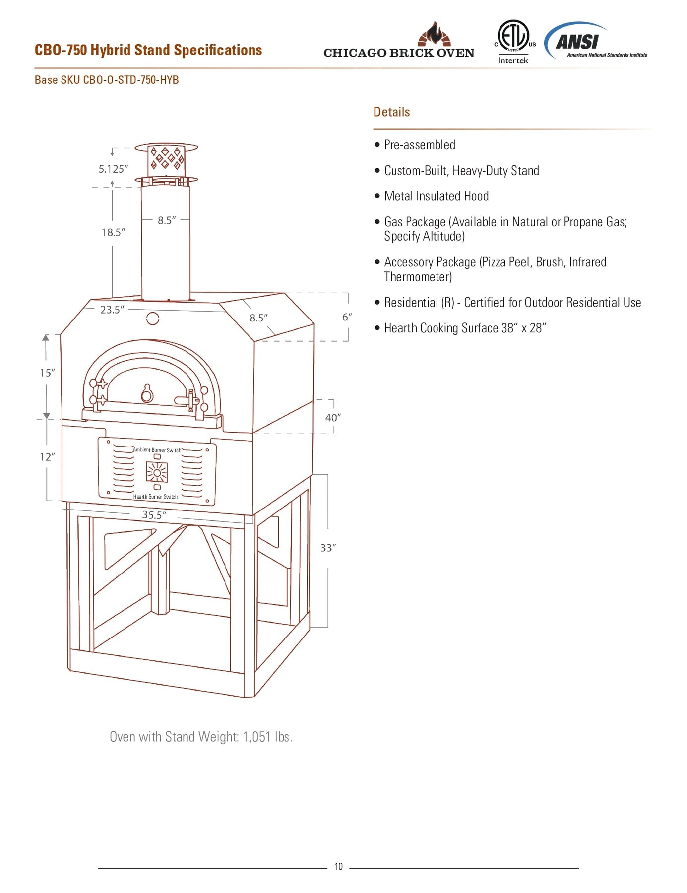 The CBO-750 Hybrid Stand (Commercial) is certified toUL Standards, giving you everything you need to experience the high heat of our signature FlameRoll®.