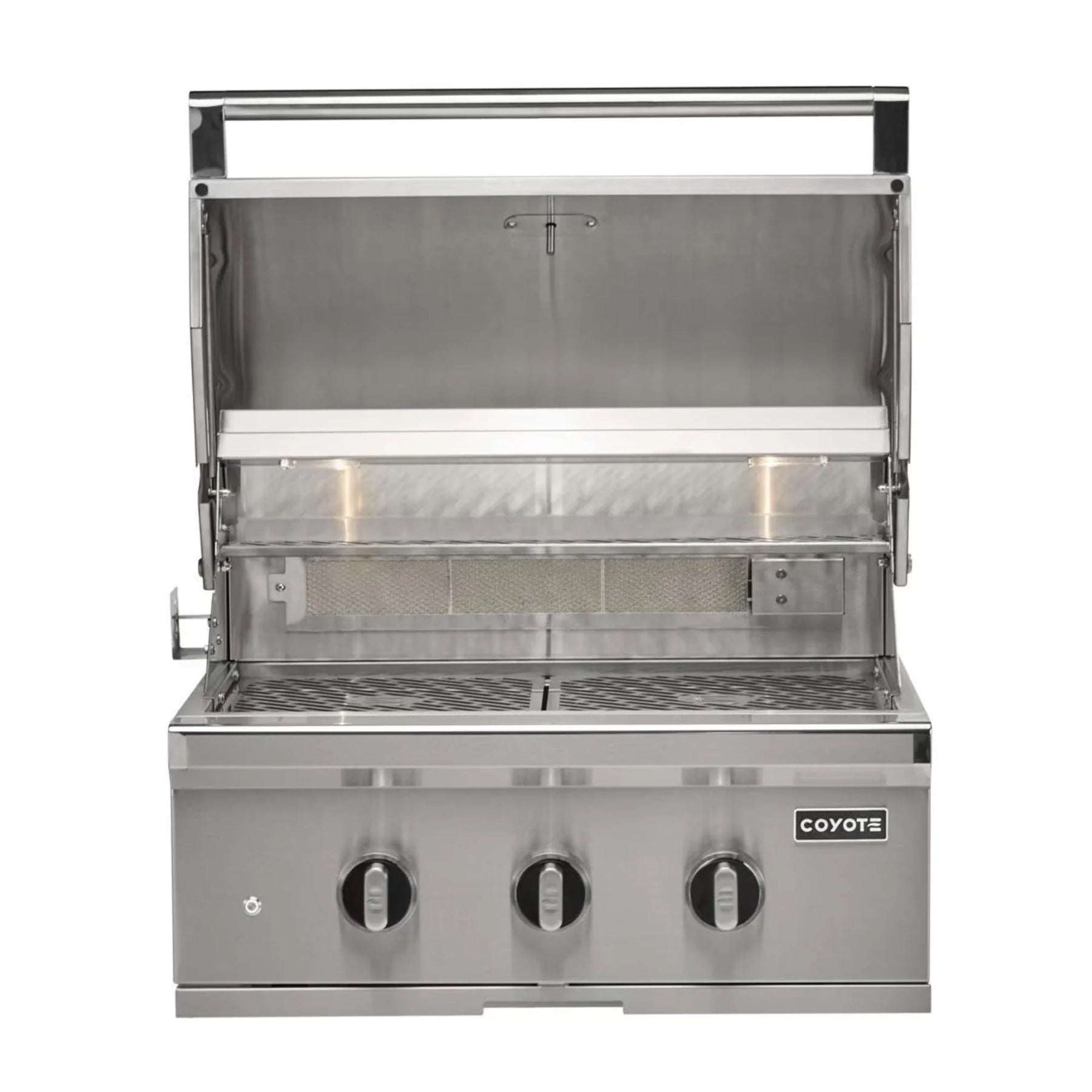 Bring sleek innovation and high-end performance to your outdoor kitchen with the Coyote SL-Series 30-Inch 2-Burner Built-in Gas Grill. Designed for the modern griller, this powerhouse features premium 304 stainless steel construction and an impressive array of cutting-edge upgrades—from advanced safety systems to smart lighting and searing versatility. With interactive color-shifting LED knobs and a signature Coyote logo light that beams onto the ground, this grill makes a bold statement even after dark. Two Infinity burners, an interchangeable sear burner, rear infrared burner, and volcanic briquettes work together to deliver precise, even heat every time. Add in unmatched safety from the built-in thermocouple and safety valves, and you've got a grill built for confidence, control, and wow-factor results.