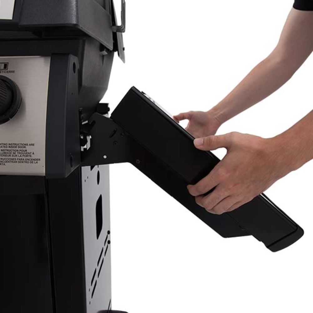 The Broil King® Crown™ 400 Series features 460 sq. in. primary cooking surface and includes a durable cast aluminum oven, 4 stainless steel Dual-Tube™ burners, stainless steel Flav-R-Wave™ cooking system, and electronic ignition. All Crown 400 series include heavy-duty 3-position cast iron cooking grids, black drop-down side shelves and enclosed black cabinet base.
