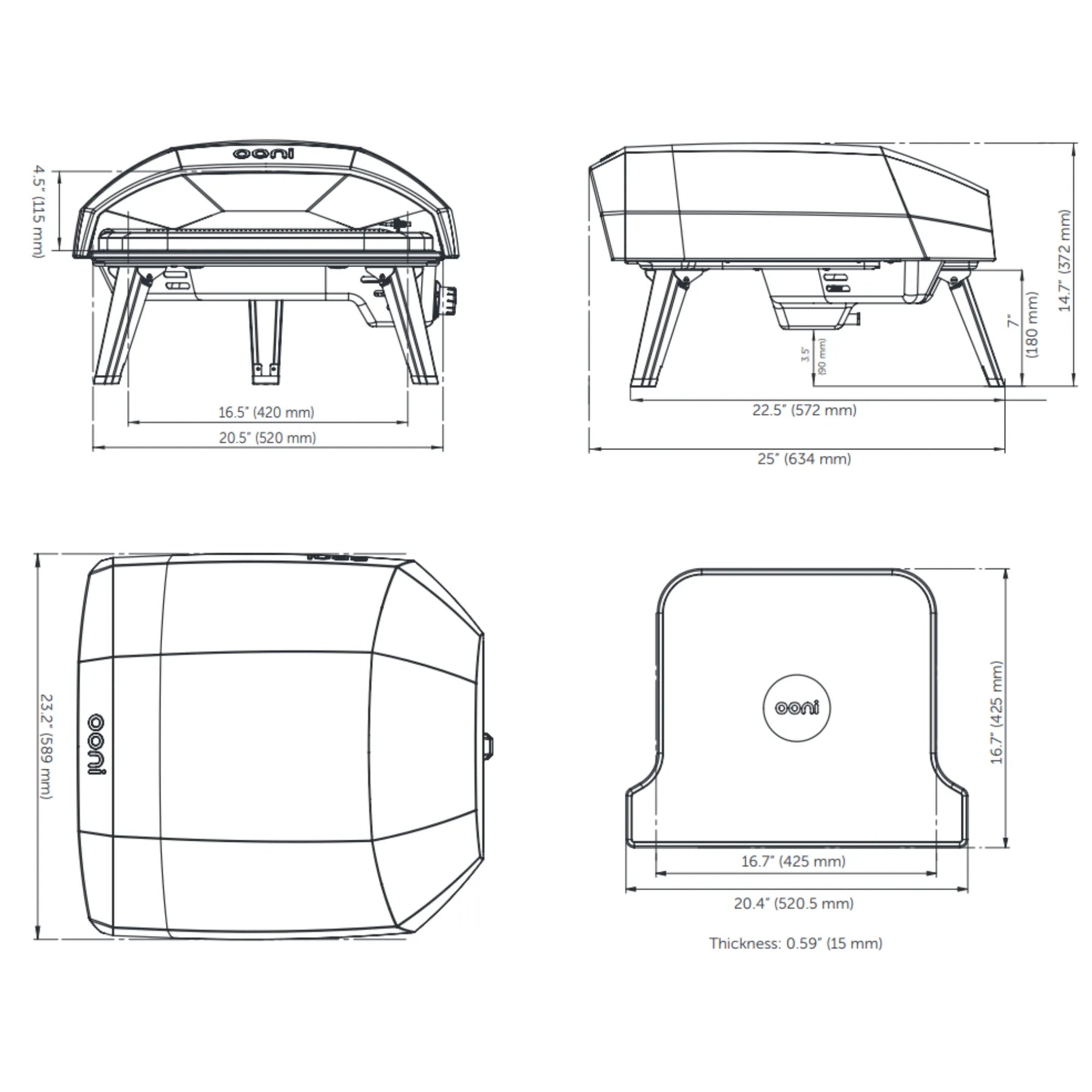 Ooni Koda 16 pizza oven body with folding legs