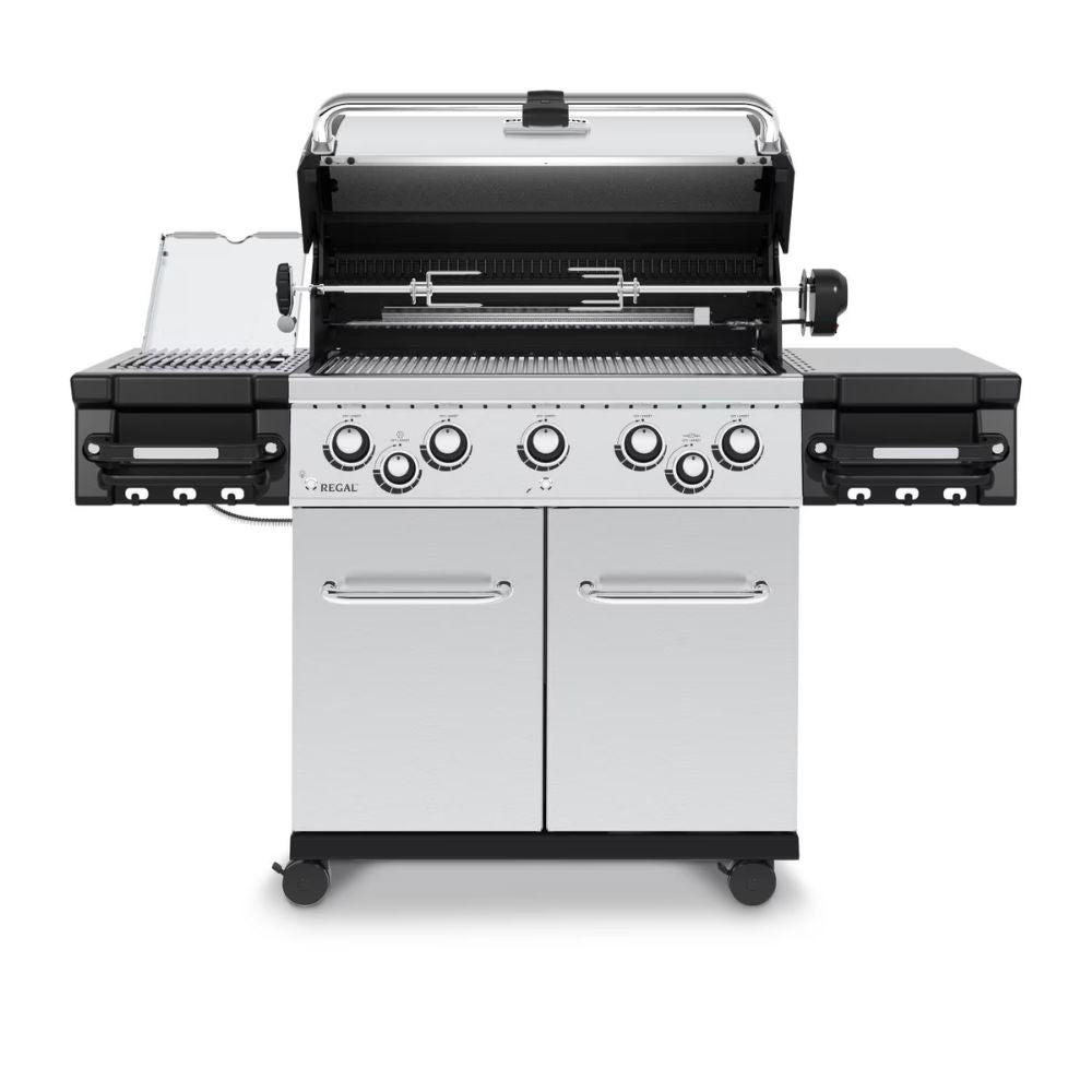 The Regal™ S 590 Pro IR features 625 sq. in. total cooking space including the stainless steel warming rack, solid 9mm stainless steel cooking grids, stainless steel Flav-R-Wave™ cooking system, 5 stainless steel Dual-Tube™ burners, stainless steel side shelves, illuminated control knobs, and an enclosed cabinet base. The powerful infrared side burner has a solid 9 mm stainless steel cooking grid and aluminum body.