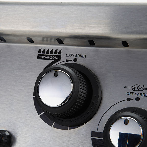 Signet™ 320 features 635 sq. in. total cooking space including porcelain coated warming rack, heavy-duty cast iron cooking grids, stainless steel Flav-R-Wave™ cooking system, 3 stainless steel Dual-Tube™ burners, stainless steel drop-down side shelves and an enclosed cabinet base.
