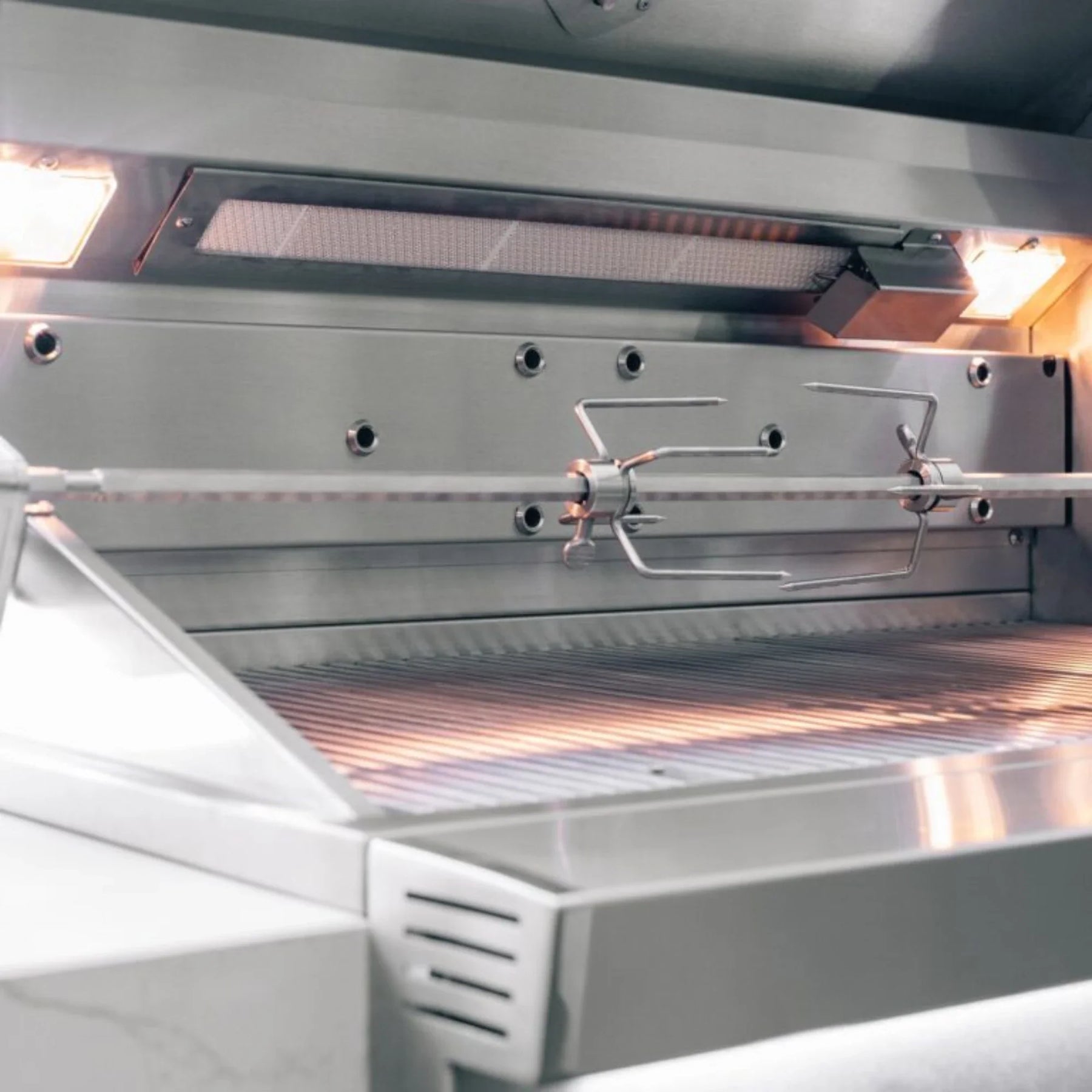 13,000 BTU Angled Infrared Back Burner ideal for rotisserie cooking and high-heat searing