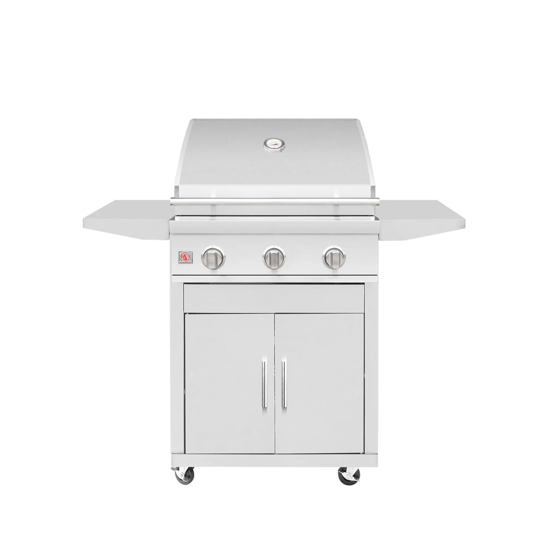 Perfectly sized for patios, condo balconies, and compact outdoor kitchens, the Summerset Sizzler 25-Inch Freestanding Gas Grill delivers commercial-grade performance in a space-saving footprint. Constructed with corrosion-resistant #443 stainless steel and powered by two 12,000 BTU #304 stainless steel tube burners, this grill is built to handle everyday use in both residential and multi-unit environments. With no need for electrical power and a rugged, low-maintenance design, it’s ideal for remote or shared-use setups. Paired with the custom 25-Inch Summerset Deluxe Cart, it becomes a fully mobile outdoor cooking station — complete with fold-down shelves, secure storage, and easy maneuverability.