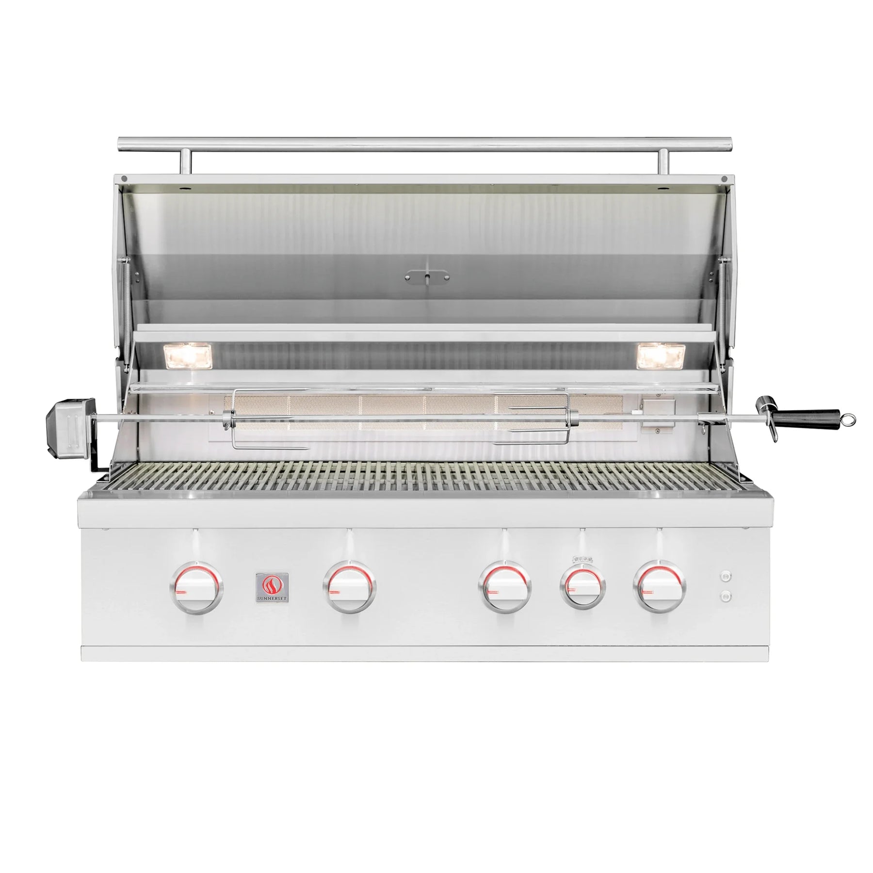 For grillers who demand power, precision, and commercial-grade durability, the Summerset TRL Pro 40-Inch Built-In Gas Grill delivers elite performance and modern style. Crafted from #304 stainless steel and equipped with high-output 20,000 BTU burners, a 15,000 BTU infrared back burner, and a full-featured rotisserie kit, this built-in grill is ready for anything from low-and-slow roasts to seared perfection. With premium lighting, smart heat management, and the Gold Standard Lifetime Warranty, this grill is built to be the centerpiece of your outdoor kitchen for years to come.