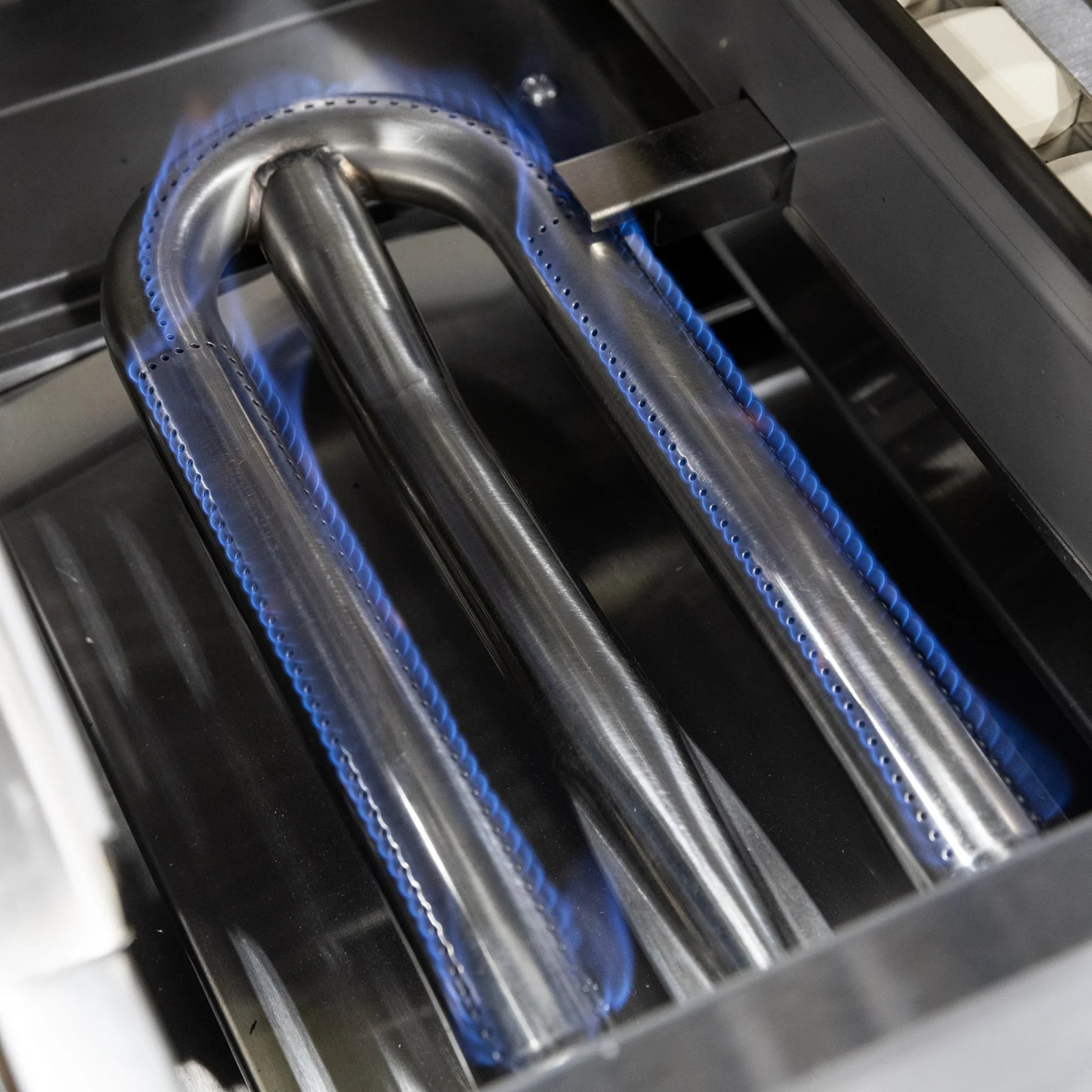 • (4) 20,000 BTU cast stainless U-tube burners deliver consistent, powerful heat