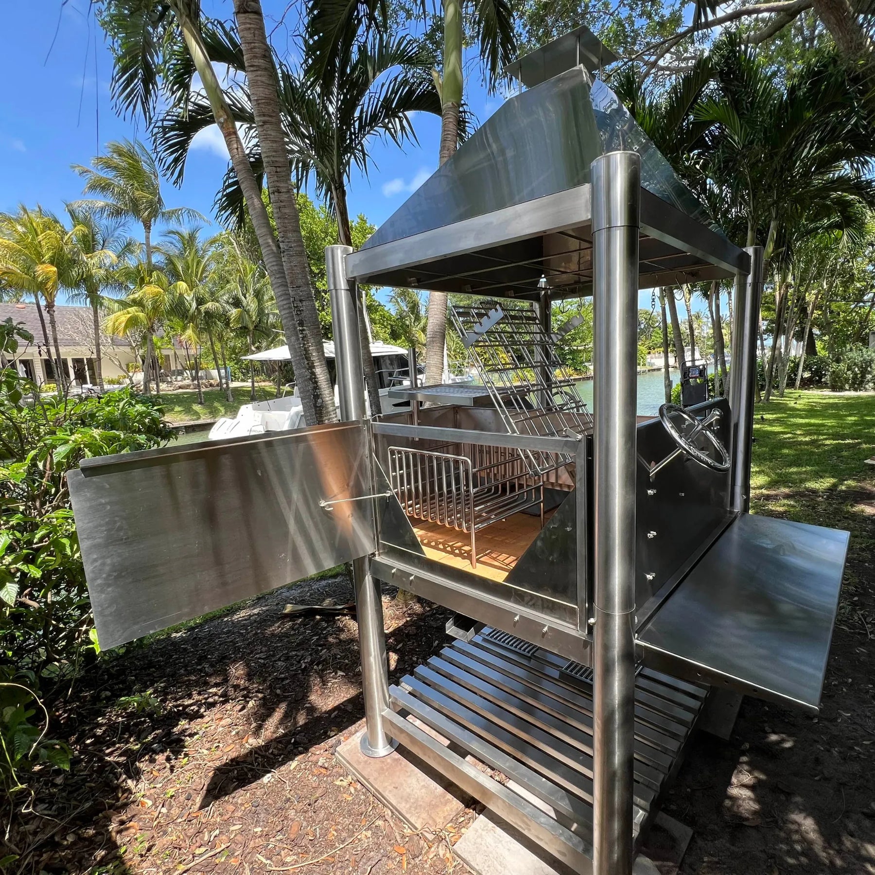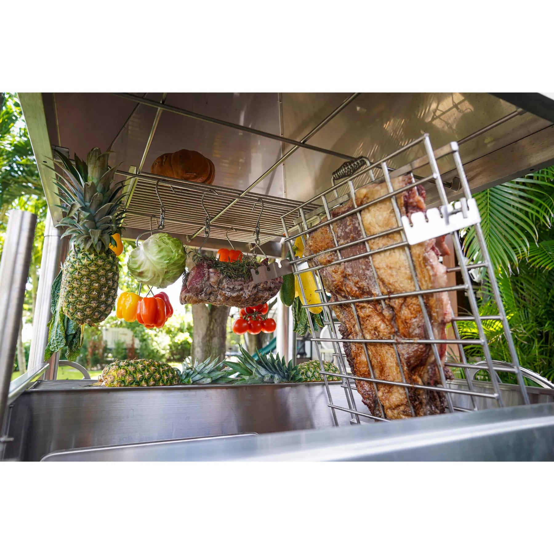 Efficient Fire Management: Firebox with gaucho-style brasero lights charcoal or firewood quickly and efficiently.