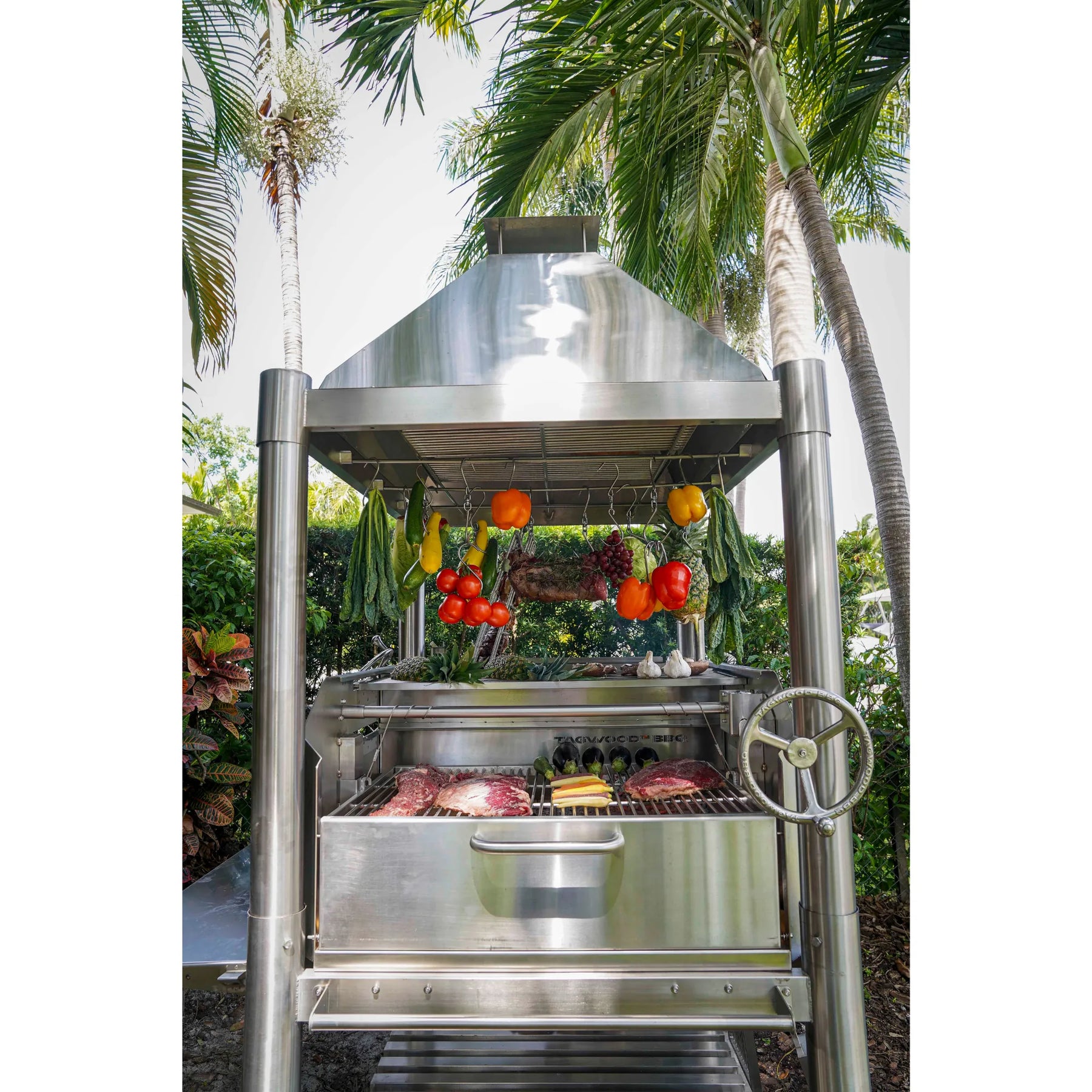 Master the art of Argentine grilling with the Tagwood BBQ12SS Santa Maria Charcoal Gaucho Grill, a true showstopper for outdoor cooking enthusiasts. Made entirely of 304 stainless steel, this grill offers unmatched durability and versatility with six distinct grilling surfaces, height-adjustable systems, and robust fire management features. With 3,363 sq. in. of grilling space and premium components, it’s the ultimate grill for showcasing your skills and exploring creative culinary possibilities.