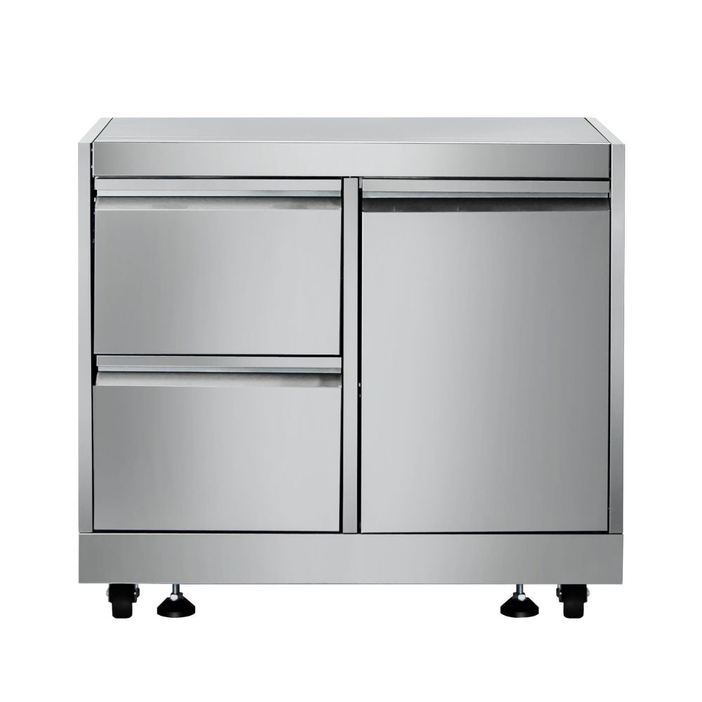 THOR Kitchen offers the power and performance of a premium pro-style appliance at a practical price. The THOR Kitchen 32 Inch Grill Cabinet is designed to hold our 4-Burner Built-in Propane Gas Island Grill (not included). This stainless steel cabinet enhances your outdoor kitchen setup with its professional design and ample storage space.