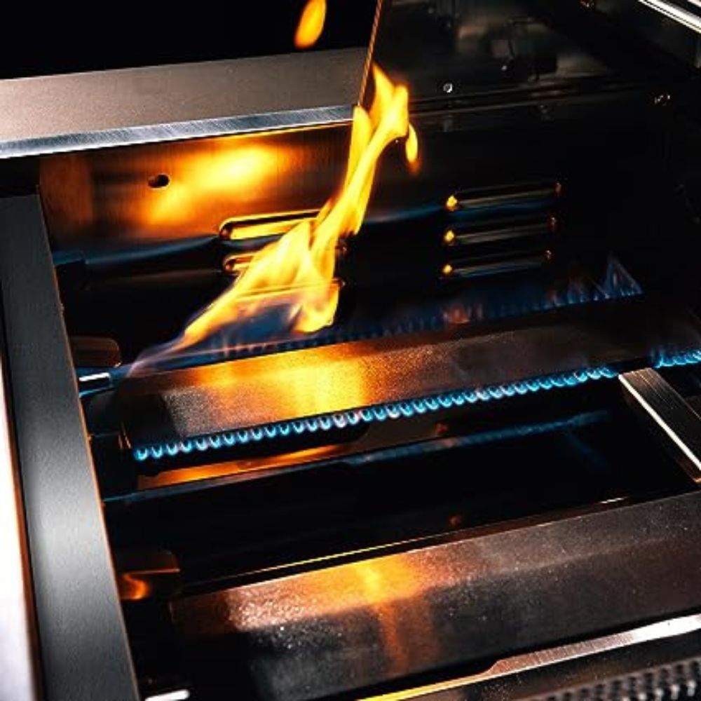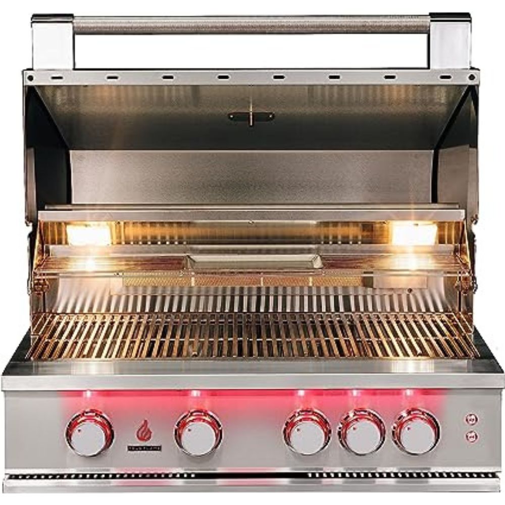 The all new TrueFlame grill redefines value with premium craftsmanship. This 32”, 4-burner, #304 stainless steel grill is packed with features. Luxury interior and exterior lighting, square stainless steel cooking grates for perfect grill lines, and heat-zone separators for optimal control make gourmet grilling easy. Elevate your outdoor cooking experience with this high performance grill that’s backed by an industry-best Gold Standard Lifetime Warranty.